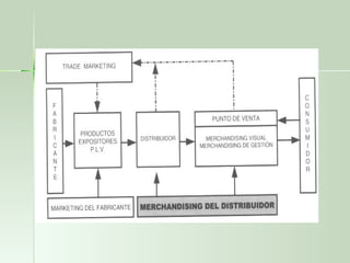El documento describe la historia y evolución del merchandising desde la antigüedad hasta la actualidad. Explica que el merchandising surgió con los primeros mercados y fue practicado por comerciantes como Marco Polo. Más tarde, con la aparición de los grandes almacenes y supermercados en el siglo XIX y principios del siglo XX, se desarrollaron nuevas técnicas de visualización y rotación de productos. Finalmente, analiza conceptos como el merchandising visual y de gestión, y los diferentes elementos y objetivos del merchand