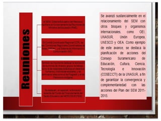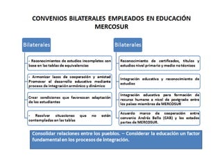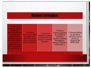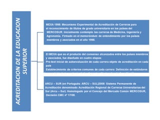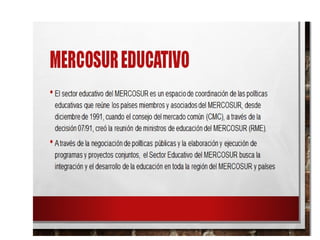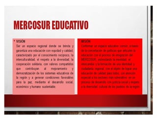 Este documento describe los logros del Sector Educativo en Mercosur en los últimos 10 años, incluyendo la acreditación de la educación superior, la movilidad educativa entre programas acreditados, oportunidades de formación en posgrados, y el financiamiento de la educación pública internacional. También proporciona una bibliografía relevante.