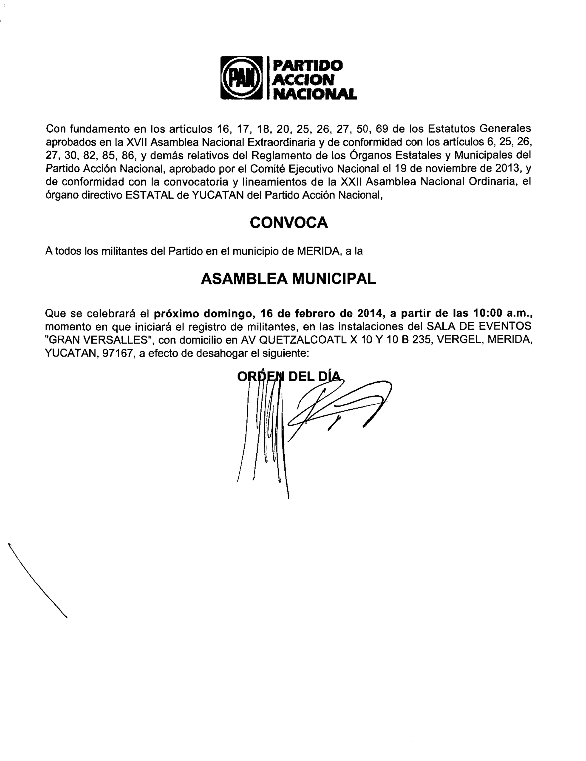 Ponemos a disposición la convocatoria para la Asamblea Municipal de Mérida que se llevará al cabo el próximo domingo 16 de febrero de 2014