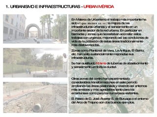 Durante los tres años de gobierno socialista en Mérida (2007-2010), se realizaron importantes inversiones en infraestructuras, empleo, servicios sociales, cultura, turismo, juventud, deportes, espectáculos y educación. Se mejoraron redes de saneamiento, se crearon nuevos centros sociales y culturales, se fomentó la creación de empleo a través de varios planes, y se convirtió a Mérida en un referente cultural y turístico gracias a proyectos como la rehabilitación de la presa de Proserp