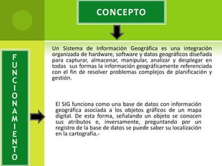 Un sistema de información geográfica (SIG) es una integración de hardware, software y datos geográficos diseñada para almacenar y analizar información espacial. Los SIG utilizan datos raster y vectoriales. Los datos raster se almacenan en una cuadrícula de celdas, mientras que los datos vectoriales representan entidades discretas como puntos, líneas y polígonos. Los SIG se usan en viticultura para recopilar y analizar datos espaciales sobre características del suelo, clima y vegetación que son útiles para la to
