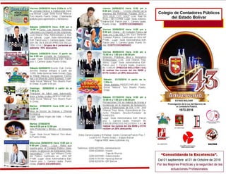 Tríptico informativo de las actividades correspondientes al Mes Aniversario del Colegio de Contadores Públicos del Estado Bolívar, año 2016.