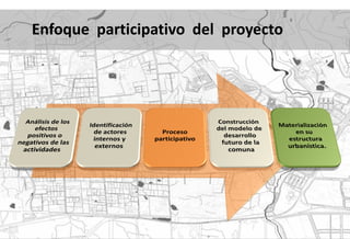 El documento aborda la planificación urbanística de la comuna 22 en Santiago de Cali, centrándose en la aplicación de la norma urbanística y su impacto en el espacio público, la movilidad y la calidad de vida de los ciudadanos. Se enfatiza la necesidad de armonizar la urbanización con las características residenciales y recreativas de la zona, así como la importancia de mejorar las infraestructuras y los servicios públicos. Se plantean interrogantes sobre cómo resolver las problemáticas actuales relacionadas con el uso del suelo y la integración de espacios públicos adecuados.