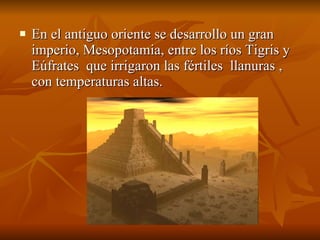 Mesopotamia fue un gran imperio que se desarrolló entre los ríos Tigris y Eúfrates, donde la tierra fértil y el agua proporcionaron abundancia. Los habitantes de Mesopotamia domesticaron varios animales como ovejas, cabras y vacas para la agricultura y la ganadería. A partir del 8500 a.C., surgió una alta civilización en lugares como Serigok, Hanidar y Zawui, con campos finos y más de 1000 viviendas en 12 hectáreas.