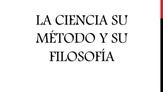 Este documento describe los principios fundamentales del método científico. Explica que cada ciencia desarrolla sus propias técnicas de verificación para probar hipótesis mediante la experiencia. Además, señala que el método científico es un proceso iterativo que incluye la formulación de problemas, la construcción de modelos teóricos, la deducción de consecuencias, la prueba de hipótesis y la introducción de conclusiones en la teoría. Finalmente, argumenta que el método científico, aunque falible