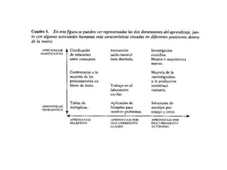 El documento propone implementar estrategias metodológicas basadas en el aprendizaje significativo para mejorar los aprendizajes de los estudiantes en una institución educativa. Se exploran diversas teorías del aprendizaje, incluyendo las de Vigotsky y Ausubel, y se presentan diferentes tipos de aprendizaje según sus características y métodos. Además, se enfatiza la importancia del meta-aprendizaje y la necesidad de comprender los contextos socio-culturales de los estudiantes para facilitar una enseñanza efectiva.