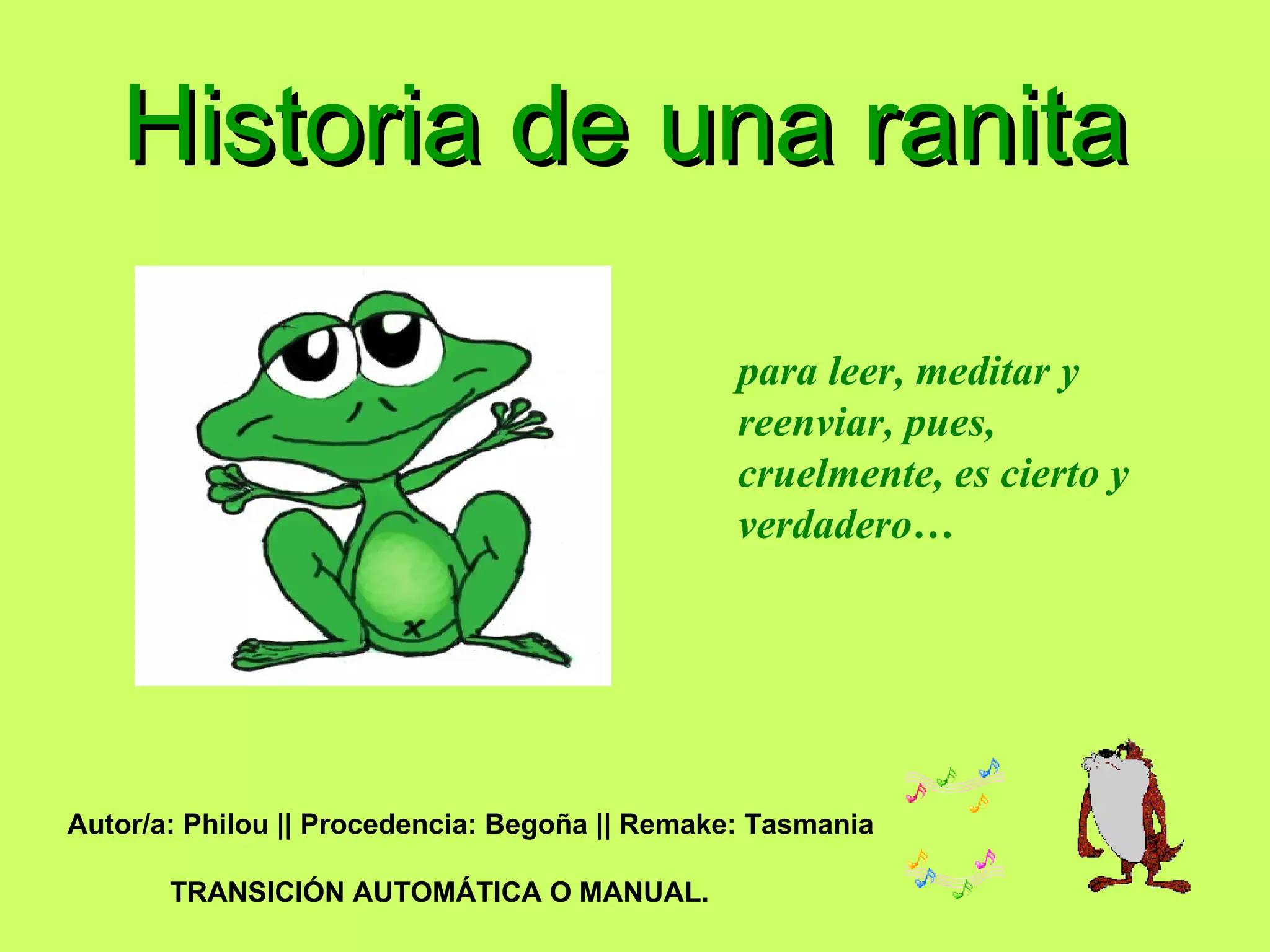 La historia cuenta la metáfora de una rana que se va cocinando lentamente en una olla de agua caliente sin darse cuenta. De la misma forma, la sociedad va sufriendo cambios negativos de forma gradual a los que se va acostumbrando sin reaccionar. El autor argumenta que debemos despertar la conciencia antes de que sea demasiado tarde y estemos totalmente "cocinados" por los ataques a nuestras libertades y la degradación del medio ambiente.