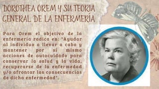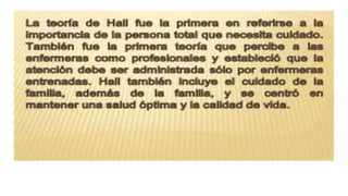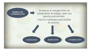 Este documento presenta una introducción a los diferentes modelos y teorías de enfermería, incluyendo sus componentes fundamentales (persona, entorno, salud y cuidado). Describe varios modelos como el naturalista, de suplencia y de interrelación, así como teorías desarrolladas por pioneras como Florence Nightingale, Imogene King, Betty Neuman y Faye Glenn Abdellah. El objetivo es conocer el enfoque de cada modelo o teoría para la práctica de enfermería.