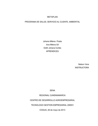 Este documento presenta un programa de salud, servicio al cliente y medio ambiente para la empresa ROSWAR LTDA. El programa incluye capacitaciones para los empleados sobre salud ergonómica, atención al cliente y cuidado ambiental. El objetivo es proteger la salud de los trabajadores, el medio ambiente y mejorar el clima organizacional a través de programas como carteleras informativas, brigadas de salud, exámenes médicos periódicos, conocer las necesidades de los clientes, clasificación de residuos y auditorías ambientales.