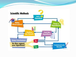 Este documento presenta una introducción al método científico y sus pasos para estudiar las ciencias de la vida. Explica que el método científico involucra hacer observaciones, formular preguntas, desarrollar hipótesis comprobables, realizar experimentos controlados, analizar datos, y comunicar conclusiones. También cubre conceptos como variables, seguridad en el laboratorio, y el objetivo de compartir hallazgos científicos.