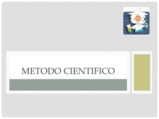 El método científico se define como una serie de pasos sistemáticos e instrumentos que llevan al conocimiento científico. Se fundamenta en la observación de fenómenos naturales y la formulación de hipótesis que luego son sometidas a pruebas y experimentos. El método científico incluye elementos como el sistema conceptual, las hipótesis y las variables, y consta de etapas como la formulación de preguntas, la recopilación de datos, el análisis e interpretación de resultados y la verificación de hipótesis.
