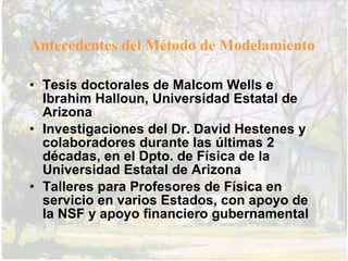 El documento describe un panel sobre estrategias innovadoras en la educación de ciencias, centrado en el método de modelamiento para la enseñanza de la física, presentado por el Prof. Claudio Pérez Matzen. Este método hace hincapié en la construcción de modelos por parte de los estudiantes para facilitar su aprendizaje y comprensión de conceptos físicos, destacando la importancia de la representación visual y matemática en el proceso educativo. Se presentan experiencias de implementación en distintas instituciones educativas, mostrando notables ganancias en el aprendizaje y retención de conceptos físicos a través de un enfoque constructivista.