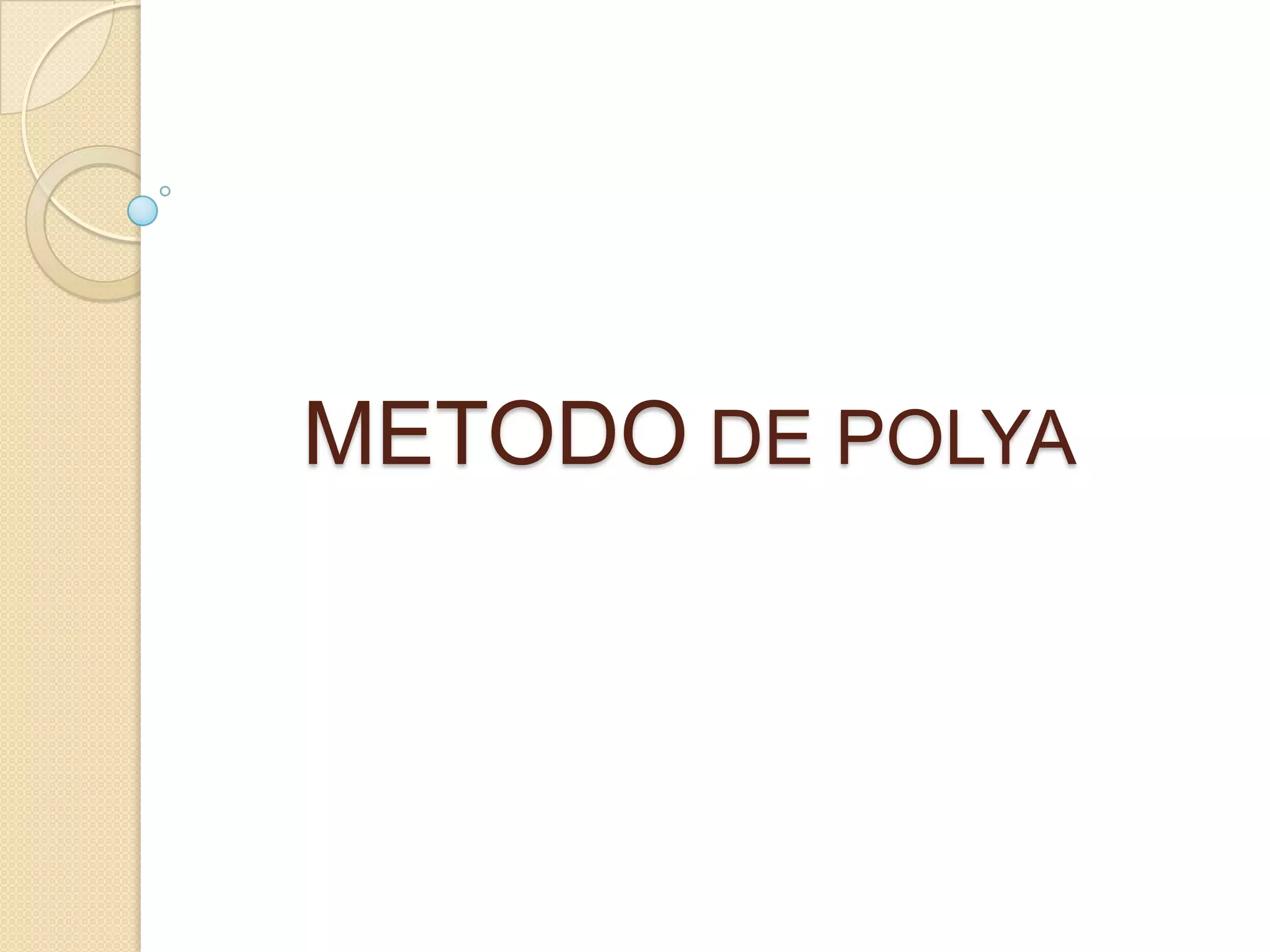 El documento describe el Método de Polya para resolver problemas matemáticos, el cual consta de 4 pasos: 1) Entender el problema, 2) Configurar un plan, 3) Ejecutar el plan, y 4) Mirar hacia atrás. También incluye sugerencias para resolver problemas como tomarse tiempo para explorar el problema, analizarlo desde diferentes ángulos, y revisar la solución. El objetivo es desarrollar habilidades para resolver cualquier tipo de problema de manera efectiva.