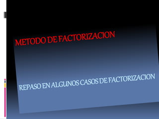 Este documento presenta dos métodos para resolver ecuaciones de segundo grado: factorización y la fórmula cuadrática. Explica los casos de factorización como trinomio cuadrado perfecto, diferencia de cuadrados y trinomio de la forma ax2 + bx + c con a = 1. Luego muestra ejemplos resueltos de ecuaciones cuadráticas usando factorización y concluye con tres ejercicios propuestos para practicar.