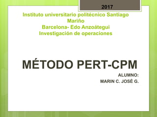 Este documento presenta los métodos PERT y CPM para la planificación y gestión de proyectos. Explica que PERT es un algoritmo probabilístico que considera tiempos optimistas, probables y pesimistas para cada actividad, mientras que CPM identifica la ruta crítica de un proyecto en base a las duraciones estimadas de cada actividad. También incluye ejemplos de cómo aplicar estos métodos para determinar la duración total de un proyecto y la probabilidad de que se complete dentro de un plazo determinado.
