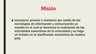 Este documento presenta la misión, visión, valores y políticas de un grupo de investigación llamado OSTROM. Su misión es utilizar la tecnología para favorecer el desarrollo económico de su país. Su visión es lograr cualquier objetivo con esfuerzo y constancia. Sus valores incluyen el compañerismo, respeto, empatía y honestidad. El grupo asignará temas de investigación a sus miembros y generará artículos y ponencias para desarrollar una cultura de investigación.