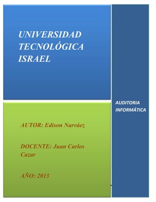 Este documento describe la metodología CRMR (Computer Resource Management Review) para realizar auditorías informáticas. Explica que CRMR evalúa la eficiencia en el uso de recursos informáticos mediante el management. Luego detalla los supuestos de aplicación, áreas de aplicación, objetivos, alcance y cómo se realiza la evaluación de CRMR en varias fases. Finalmente, indica los ciclos de seguridad que comprende una auditoría de seguridad con CRMR.