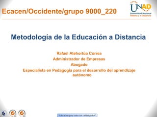 El documento describe la metodología de la educación a distancia, enfocándose en su definición, objetivos y características. Se destaca la importancia del autoaprendizaje y la flexibilidad en la formación, permitiendo el acceso a un aprendizaje universitario para personas con limitaciones. Además, se mencionan los procesos metodológicos y la utilización de tecnologías para facilitar el aprendizaje en entornos virtuales.
