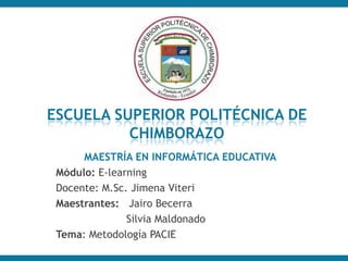 La metodología PACIE se utiliza para aplicar herramientas virtuales como aulas virtuales en la educación. Consta de 5 fases que permiten un desarrollo integral de la educación virtual. El documento también discute características de un aula virtual efectiva y el uso de la metodología PACIE para generar aprendizaje colaborativo entre estudiantes.