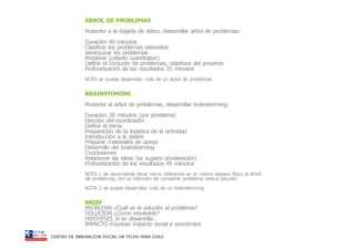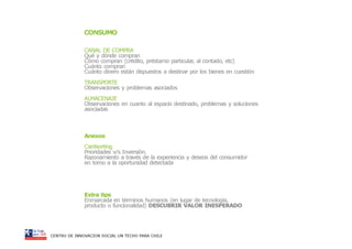 El documento presenta una metodología para desarrollar modelos de negocios. Propone una serie de preguntas clave agrupadas en 5 pasos: 1) Identificar usuarios y clientes, 2) Determinar la oferta y propuesta de valor, 3) Definir canales de comunicación y distribución, 4) Establecer mecanismos de relación con clientes, 5) Analizar flujos de ingresos. El objetivo es guiar el proceso de creación de modelos de negocios centrados en la creación de valor para los usuarios.