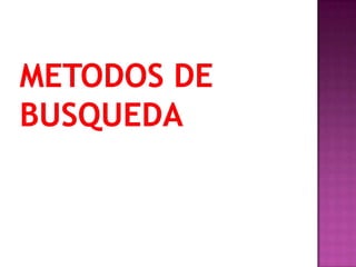 Este documento describe diferentes métodos de búsqueda como la búsqueda secuencial y binaria para encontrar datos en vectores y archivos. También presenta la implementación de una clase lógica TBusquedas que incluye métodos para realizar búsquedas secuenciales y binarias. Además, proporciona instrucciones sobre cómo realizar búsquedas efectivas en un sistema considerando factores como la capitalización, el uso de comillas para números y frases exactas, y los operadores AND, - y +.