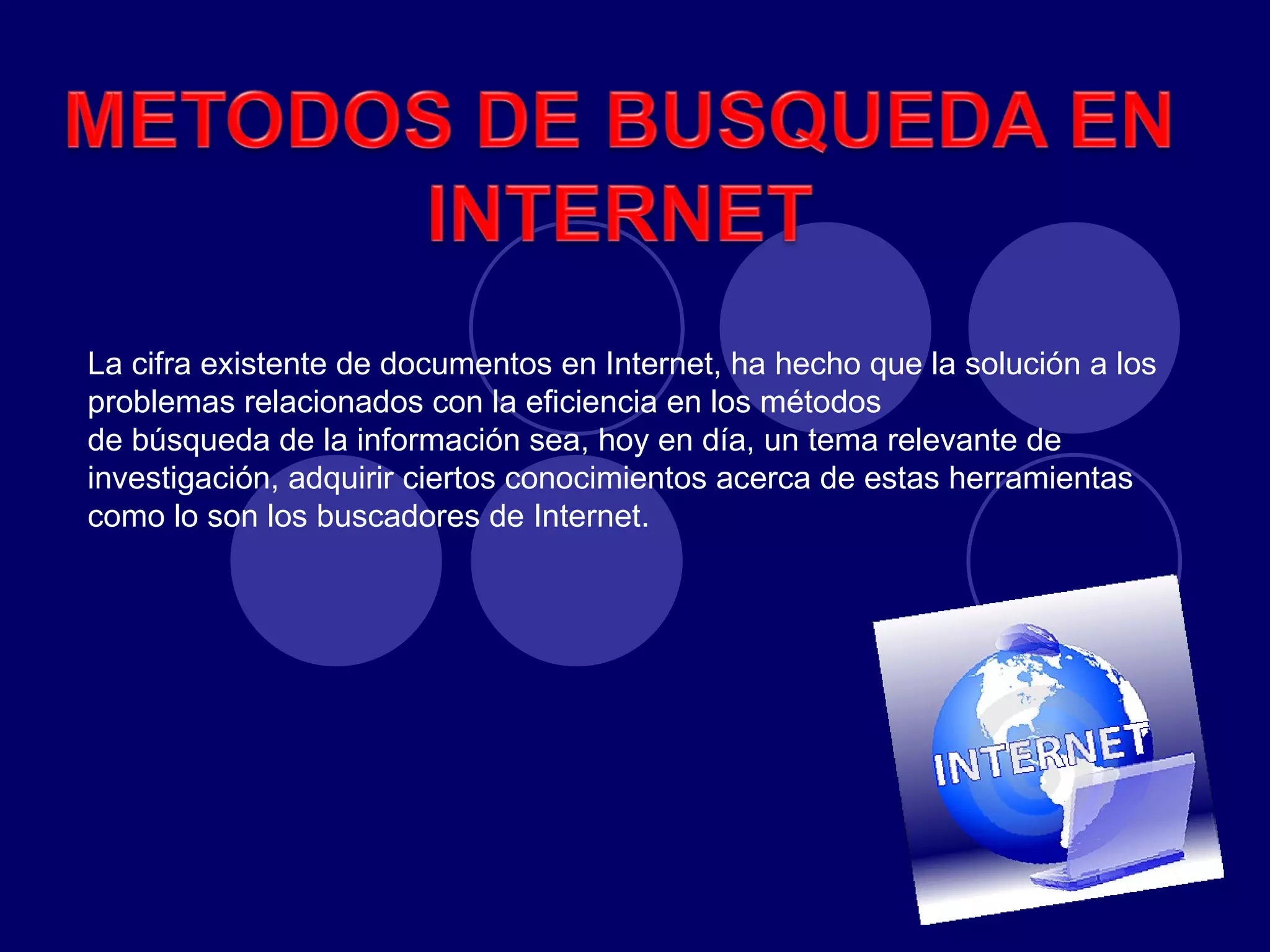 El documento describe diferentes tipos de herramientas de búsqueda de información en Internet como índices temáticos, motores de búsqueda y metabuscadores. Explica que los índices temáticos permiten buscar por temas o categorías, los motores de búsqueda funcionan con palabras clave almacenadas en su base de datos, y los metabuscadores no tienen su propia base de datos sino que buscan en varios motores a la vez. También define operadores lógicos como AND, OR y NOT que se usan para precisar las búsqu