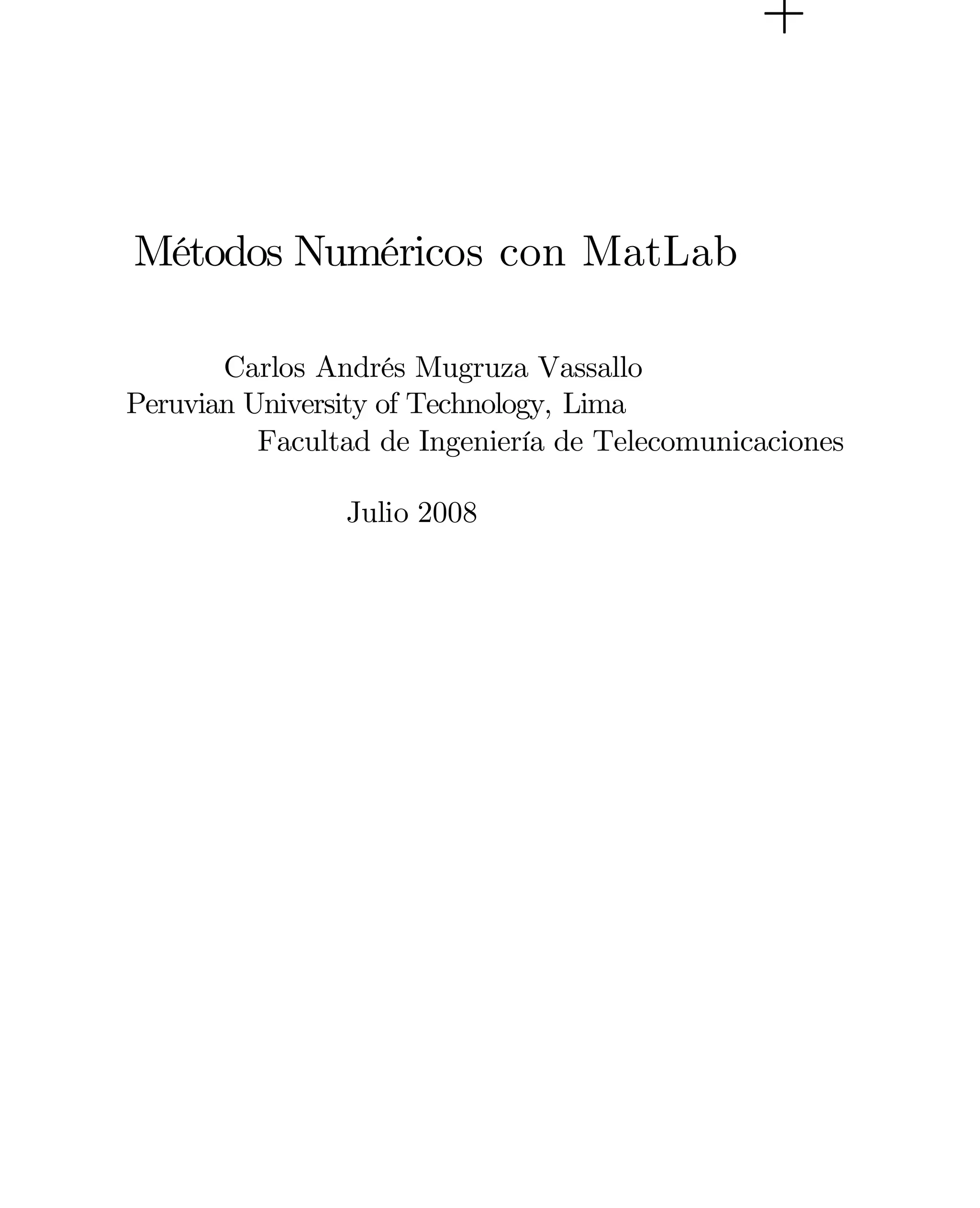 Este documento presenta un libro sobre métodos numéricos utilizando MATLAB. Contiene 8 capítulos que cubren temas como ecuaciones no lineales, interpolación, integración numérica, ecuaciones diferenciales ordinarias y parciales. Incluye más de 100 ejercicios y 30 ejemplos resueltos con rutinas MATLAB para fines didácticos.