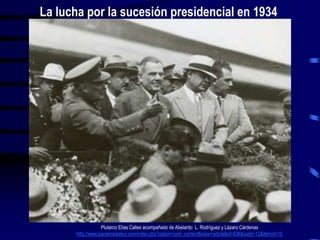 Este documento describe la situación de México en las décadas de 1930 y 1940. Durante este periodo, México era principalmente un país agrario con una población de alrededor de 16.5 millones de personas, la mayoría de las cuales vivían en zonas rurales. El gobierno de Lázaro Cárdenas llevó a cabo reformas agrarias como la distribución de tierras a campesinos y la creación de la Confederación Nacional Campesina para representarlos. En las ciudades, la mayoría de la población vivía en vecind