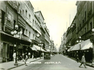 El documento describe algunos lugares importantes de la Ciudad de México a principios del siglo XX, incluyendo la Catedral de México, el Palacio Nacional, el Teatro Principal, la Avenida de los Hombres Ilustres (ahora Avenida Hidalgo), la Plaza de Santa Cruz, la Plaza Tolza, la Casa de los Azulejos, el Palacio de Correos, la Avenida Juárez, las Calles de Bruselas y Liverpool, la Casa Brannif, la Casa en la Calle Vallarta y el Paseo de la Reforma y el Castillo de Chapultepec