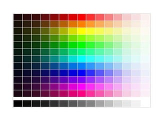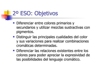 Este documento proporciona una introducción a la teoría del color, incluyendo los colores primarios y secundarios, el círculo cromático, colores complementarios, colores cálidos y fríos, saturación y luminosidad. Explica que los colores primarios son el magenta, amarillo y azul, y que los secundarios son el rojo, verde y violeta. También describe cómo mezclar colores primarios para obtener secundarios y cómo los colores complementarios se equilibran mutuamente cuando se mezclan.