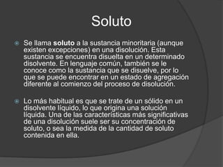 El documento presenta información sobre diferentes conceptos relacionados con las mezclas y sus componentes (soluto, disolvente), así como factores que afectan la solubilidad y diferentes métodos para separar mezclas como la decantación, filtración, evaporación, destilación, centrifugación, cristalización y cromatografía. El documento también incluye la composición de un grupo de trabajo.