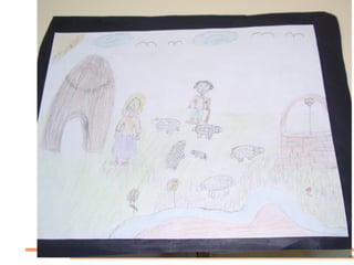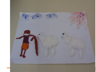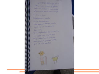 Los estudiantes exploraron diferentes materiales plásticos para representar un poema, con Rubén eligiendo plastilina mientras que otros prefirieron otros materiales. Luego, en 6o grado, prefirieron leer un texto sobre la vida de Miguel Hernández y recrear plásticamente cómo imaginaban su casa y familia.