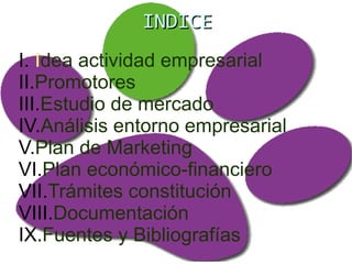 La empresa propone una guardería canina con parque de ocio y cafetería. Ofrecerá servicios de adiestramiento, educación y entretenimiento para perros, así como servicio social. La empresa será constituida por 4 miembros familiares y 5 empleados cualificados. Realizarán un estudio de mercado para identificar la demanda y competidores. El plan de marketing incluye servicios, precios competitivos y comunicación a través de redes sociales. Requieren una alta financiación externa pero existe una gran oportunidad debido a la novedad