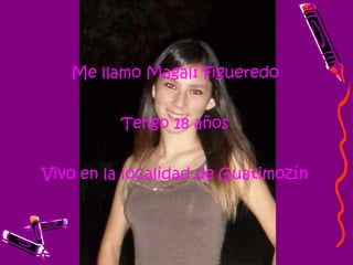 El documento presenta la biografía escolar de Magalí Figueredo. Detalla las instituciones educativas que asistió, incluyendo jardines de infantes, escuelas primarias y secundarias. Describe actividades y momentos compartidos en cada una de estas etapas, así como también incluye fotos de los edificios escolares y de sus compañeras y amigas.