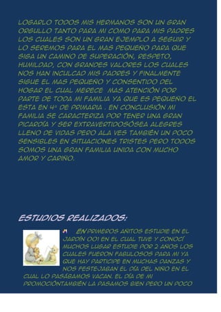 La autora nació en 1997 en una familia de 7 integrantes. Sus padres son Ysabel Jiménez y Enrique Gonza Huayama, y tiene 5 hermanos mayores. Creció en un hogar cariñoso y unido, y sus hermanos son un orgullo para la familia. Estudió en el Jardín 001 y luego en el colegio parroquial Señor de Huamantanga, donde disfrutó de sus estudios primarios. Actualmente cursa el cuarto año de secundaria y planea estudiar Derecho y Psicología