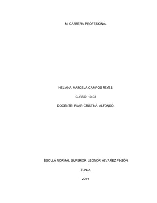 Este documento describe la carrera de ingeniería civil. Explica que los ingenieros civiles diseñan y construyen la infraestructura como edificios, puentes y redes de agua. La carrera dura 5 años y se imparte en universidades de varias ciudades colombianas. Ofrece un amplio campo laboral en empresas constructoras, de servicios y el gobierno. Para estudiarla se requiere capacidad analítica y habilidad numérica.