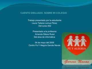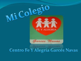 El documento presenta la historia del Centro Educativo Fe y Alegría Garcés Navas. Originalmente consistía en un par de casetas rodeadas de potreros, pero ha ido evolucionando y expandiéndose a través de donaciones. Actualmente ofrece educación básica primaria, secundaria y media, con tres especialidades disponibles para los grados superiores: gestión contable y financiera, electricidad y programación. La autora del texto busca resaltar la importancia de aprovechar las oportunidades educativas que brinda la institución.