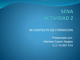 El documento presenta la misión y visión del SENA, que busca formar trabajadores colombianos e invertir en su desarrollo técnico y social para contribuir al crecimiento del país. También describe los símbolos del SENA como su escudo, bandera e himno, y explica los roles del aprendiz y tutor virtual, así como los servicios de bienestar para aprendices. Por último, resume las funciones de las plataformas Blackboard y Sofía Plus para entregar cursos en línea y optimizar el aprendizaje.