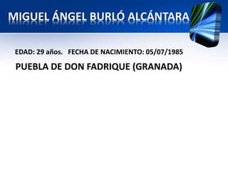 Este documento es el currículum vitae de Miguel Ángel Burló Alcántara. Resume su experiencia laboral en cargos relacionados con recursos humanos, administración y finanzas. Actualmente está terminando un máster en dirección de recursos humanos y relaciones laborales y ha realizado varios cursos y diplomados relacionados con administración y recursos humanos.