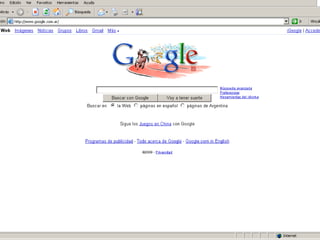 Este documento presenta la página de inicio personalizada de Maria Agostina Molina en Google, la cual incluye accesos rápidos a la Web, imágenes, noticias y otros servicios de Google como Gmail, Blogs, Calendar y Docs.