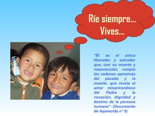 El documento habla sobre la muerte y resurrección de Jesús como el único liberador y salvador que rompió las cadenas del pecado y la muerte. También menciona la importancia de vivir la Semana Santa como un camino hacia la vida y el amor, no solo como un día. Finalmente, expresa el deseo de tener rostros de resucitados y de dedicar tiempo a Dios a pesar de los argumentos en contra de la fe.