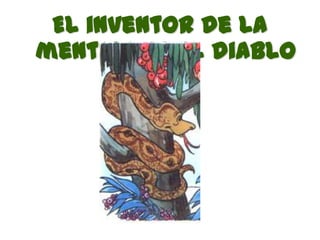 El documento resume el octavo mandamiento de no mentir ni dar falso testimonio. Explica que la primera mentira la introdujo el diablo cuando tentó a Adán y Eva, mientras que Jesús siempre dijo la verdad a pesar de que le condenaron a muerte. También cuenta la historia bíblica de Pedro negando tres veces a Jesús antes de que cantara un gallo. Finalmente, propone seguir el ejemplo de Jesús diciendo siempre la verdad y evitar pecados como la difamación o el falso testimonio.