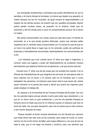 Jonathan Cherres presenta su plan de vida, en el cual busca vivir de manera digna y feliz aportando a mejorar la vida de otros a través de su carrera como ingeniero mecánico. Sus objetivos incluyen formar parte de cambios tecnológicos que mejoren la calidad de vida y aplicar sus conocimientos en grandes industrias. Su sueño es que sus padres se sientan orgullosos de él y puedan verlo convertirse en un exitoso profesional antes de fallecer.