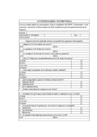 Este documento presenta un proyecto de asesoría contable móvil para las zonas rurales de la provincia de Chupaca, Perú. En el marco teórico, describe la problemática de falta de información contable y tributaria en estas zonas, y propone como objetivo principal descentralizar y transmitir dicha información para promover el crecimiento económico. En la metodología, utiliza métodos analítico-sintético y encuestas, así como instrumentos como cuestionarios. Finalmente, presenta aspectos como la descripción y justificación