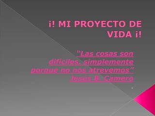 Este documento presenta las cualidades, sueños y metas de una persona soñadora, trabajadora, honesta y comprometida que aspira a terminar sus estudios, tener éxito en su carrera y formar una familia digna. Sus metas a corto plazo incluyen terminar sus próximos semestres con buenas calificaciones, y a largo plazo desea ser una profesional reconocida por su buen trabajo.
