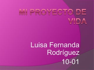 Luisa Fernanda Rodríguez es una pediatra que se graduó de la Universidad Nacional y trabaja como jefa de pediatría en la Clínica Santa María. Su proyecto de vida incluye comprar una casa quinta para su familia compuesta por su esposo y su hija, así como un último modelo de carro y una finca para reunir a su familia.