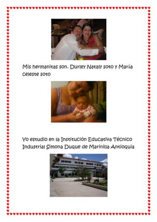 Vanessa Soto Jaramillo es una estudiante de 19 años de la ciudad de Marinilla, Antioquia, Colombia. Nació en 1997 en Cocorna, Antioquia. Sus padres son Aníbal Soto y Sonia Jaramillo, y tiene dos hermanas menores. Le gusta estudiar inglés y su asignatura favorita es inglés. Sus colores favoritos son el negro, morado y fucsia. Actualmente se está preparando para estudiar inglés con el objetivo de ser profesora de inglés en el futuro.