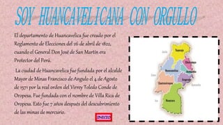 El documento proporciona información sobre el pueblo de Lircay, ubicado en la provincia de Angaraes del departamento de Huancavelica, Perú. Brevemente describe la ubicación, historia y cultura de Lircay, incluyendo detalles sobre danzas típicas como el Kapuli Pallay y la Fiesta del Carnaval lirqueño, así como la gastronomía local como el mondongode Huancavelica y la pachamanca. Además, presenta detalles sobre las artesanías textiles típicas de la reg