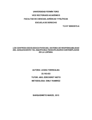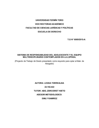 El documento aborda la implementación del sistema de responsabilidad del adolescente en Venezuela, enfatizando la necesidad de proteger derechos fundamentales de niños y adolescentes en conflicto con la ley. Destaca la importancia de un conjunto de políticas y programas destinados a garantizar su desarrollo integral y rectifica la percepción del menor como sujeto de derechos, en contraste con el viejo paradigma de tutela. Se enfatiza la intervención de equipos multidisciplinarios y la creación de instancias que aseguren un enfoque educativo y social en lugar de punitivo.