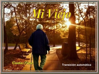 El poema describe la relación entre un hombre mayor y su hijo. El hombre mayor camina solo y espera, cargando una gran tristeza por haber caminado tanto. Aunque son diferentes, el hijo lo mira desde lejos. Mientras el hombre mayor creció en otra época, el hijo es ahora su sangre y su silencio y su tiempo.